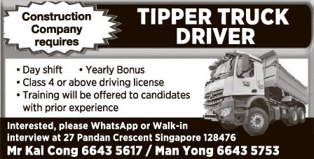 Class 3 and Class 4 drivers and delivery truck attendants needed. Interested applicants call 98892911 or 90934757