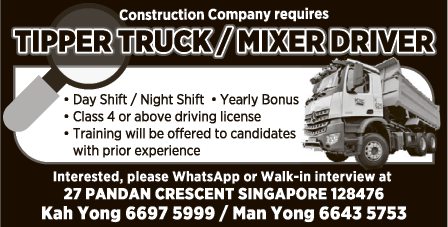 Class 3 and Class 4 drivers needed. Interested applicants call 87884848 or 90934757