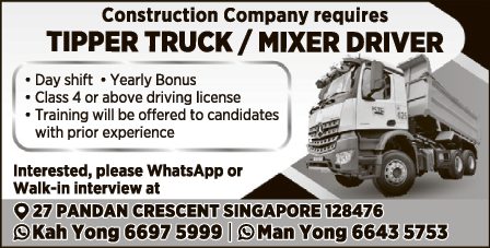 24-seater Bus Driver Class 4. Prefer staying in the West. WhatsApp/ Call: 80992070
